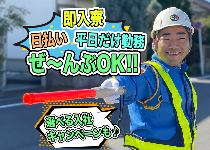 仕事内容 <安定・安心して稼げる警備会社はワンプラス> 春でも警備の仕事あり。通信系の工事なので閑散期が無い! 警備経験を活かして、即日入寮、日払いOKで稼げます! 出張面接OK、引越もサポートします。 有休取得OK。社会保険加入します。 資格取得も支援します。 車・バイクのリース貸出あり。 スマホ貸出あり。 年間の賞与20万あり。 社員登用制度あり(8名が隊員から抜擢されて管制社員となってます) ★3つ選べる入社キャンペーン★ (1)スマホ無料貸出→50GB1ヶ月無料(最大3ヶ月) (2)入社祝い金1万円(最大3万円) (3)布団一式プレゼント (4)トランシーバープレゼント (5)自転車プレゼント ※各種規定あり/重複も可 ※スマホ使用料無料期間終了後も利用継続可能(規定有) ー \\ CMでおなじみの会社 // 道路工事や電気工事の現場での 交通誘導警備のお仕事をお任せします。 事務所から現場は社用車での移動となります。 ∟普通免許(AT限定可)をお持ちの方優遇!運転手当あり! ∟普通免許のない方は乗り合わせもOKです。 ▼勤務地は【四日市市が中心】です。 ヘルプが必要な場合は、他エリアへ行く場合もあります。 ▼事前研修(20時間以上)を経て現場へ入ります。 交通誘導警備が初めての方でも先輩スタッフが 丁寧に教えるので安心してくださいね! 研修も時給1250円とお弁当付き(朝・昼・晩) ▼未経験者、多数活躍中! 仕事をしながら趣味仲間も一緒にできちゃう!? 若手からシニアまで多数活躍中です! << 空調服の無料貸与あり >> ー ★電話応募大歓迎★(通話無料フリーダイヤル)  ̄ ̄ ̄ ̄ ̄ ̄ ̄ ̄ ̄ 0800-200-4488までお気軽にお電話ください◎