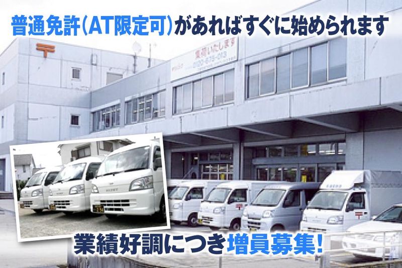 仕事内容 \軽四トラックで、個人宅や企業への配送スタッフを募集/ 安定の業務量&業績好調につき随時増員募集中! ✅未経験でも高収入を目指せる! 軽四なので普通免許だけでOK! 配送に慣れて効率よく動けるようになれば、月収40〜50万円も可能! ✅現在活躍中の24名のドライバー全員が未経験からスタート! 一人立ちできるまで、先輩がしっかりサポートするので安心です♪ ✅たくさん運べばたくさん稼げる! 配達完了数が給与に反映!1日何件運べるかによって 給与が変動するのでやりがいも感じられやすい◎ 【取扱荷物】 日本通運明石航空支店・加古川郵便局 加古川東郵便局のゆうパック・宅配便など 【配達エリア】 *日本通運明石航空支店:加古川市全域、 加古郡播磨町・稲美町、高砂市 *加古川郵便局:加古川市加古川町 野口町・尾上町・東神吉町 西神吉町・米田町 *加古川東郵便局:加古川市平岡町 別府町、加古郡播磨町 【入社後の流れ】 初日の午前中で何件配達できるかチェックし、 その数に応じて午後以降の配達量を変えながら 慣れて行ってもらいます。 【1日の配達量について】 人それぞれにはなりますが、 午前70件・午後60件を配達する方、 午前で一気に100件を配達する方、 1日300件を配達する方等、配達数は様々。 入社した約1ヶ月で100件を配達完了させた方も。 1度訪問して不在だったお宅には2度、3度と訪問したり、 よく配達に行く場所を覚えて訪問ルートを組んでみたりと 工夫しながら効率よくたくさん配達できるようになりますよ◎ 配達完了数が給与にそのまま直結するので、 働くやりがいを感じられやすいと思います◎ ◆1日の流れ(例)◆ ※アルコールチェック・健康チェックについては 出発前、到着後にしていただきます。 *07:00|1便目の荷物をセンターで積み込み、 ルート確認(ご自身のマップアプリ等でも可) *08:30|午前中指定の荷物を配達開始 *12:00|昼休憩 *13:00|センターに戻り、2便目の荷物を積み込み・ルート確認 *14:00|午後指定や再配達の荷物を配達開始 *19:00~21:00|適度に休憩を取りつつ配送を完了!(直帰OK!) ※大体20時には終了します ◆アピールポイント◆ *未経験からでも高収入! *一人の時間を大切にできる◎ *車・バイク通勤OK!交通費支給あり *ハローワークでお仕事を探している方も歓迎! \未経験から高収入を目指せる!シニア・中高年活躍中/ 軽作業&シンプルワーク で、しっかり稼げる環境! ご応募、お待ちしています!