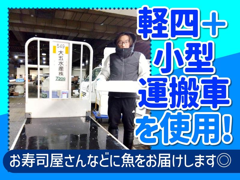 仕事内容 ■■■■■■■Pickup Point■■■■■■■ ✅普通免許でOK!配送未経験も歓迎! ✅朝型タイプの方にピッタリのお仕事! ✅軽四自動車で大阪府内中心の配送! ✅服装・髪型・髪色・髭・ピアスも自由! ✅年間休日112日!残業も少なめ! 大阪市福島区の”大阪市中央卸売市場”で 鮮魚などの仲卸業を行う弊社。 今回は、鮮魚の仕分けや 大阪府内中心の配送業務を担っていただく 正社員のドライバーを募集します。 ⭐配送経験は不問!普通免許で応募OK! ▽ 運転していただくのは、 普通免許で運転できる軽四冷凍車です。 車体も普通車に近い車両なので、 普段から運転をされている方なら ドライバー経験がなくても、 スグに慣れることができますよ。 ⭐朝型タイプにピッタリの働き方! ▽ 市場での勤務になるため、 始業は早朝3時~とかなり早め。 そのため、9時~18時の通常の働き方より ”もっと朝早くから働きたい”、 そんな方にピッタリの環境ですよ。 【仕事内容詳細】 ・鮮魚を配送先別に仕分け ・市場内での配送 ・市場外のお客様への配送 <配送について> ■配送は軽四冷凍車を運転 ■配送件数は1日5~8件程度 ■配送エリアは大阪府内が中心(尼崎も有) 市場内での配送は、 ターレットという小型運搬車を使用するため 重たい作業もほとんどありませんよ。 <1日の業務スケジュール> 3:00/出社・鮮魚の仕分け開始 ▽ 5:00/市場内での配送 ▽ 8:00/市場外への配送 ▽ (9:00ごろ/休憩) ▽ 13:00/帰社・退社 ※季節や入荷状況により、 11時での早上がりもあり! <入社後の流れ> まずは先輩社員とペアになって、 仕分け~各配送業務まで OJT形式で経験していただきます。 それぞれの業務だけでなく、 鮮魚類の知識もしっかり教えていくので 魚の名前が分からない方でも安心です。 未経験向けに しっかりとサポートを行っていくので わからない事や困った事があれば いつでもお気軽にご相談ください!