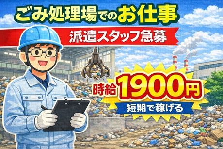 仕事内容 ~~2ヵ月間の短期求人~~ 急募!!お助け下さい!!! 急募の為、時給UP!1900円(深夜帯2375円) 『オススメpoint!!』 ◇資格・経験不問!短期就業の為、補助業務がメイン ◇社保加入無しのため、ほぼほぼ手取りに! ◇月の半分はお休みで自由な時間が多い 勤務例)(1)8:00~20:15 (2)20:00~8:15 (1)、(2)、明休み、休みの5日間のサイクル 安芸クリーンセンターでの施設管理のお仕事です。 持ち込まれた家庭ごみが安全に処理できるよう 施設設備の点検や保守作業の補助をお願いします。 〈お仕事内容〉 ・施設の巡回・点検・清掃 ・中央制御室での温度管理や運転の監視 ・ごみの集計、数値入力(フォーマットへの入力) 交替班の一員としてご勤務頂くようなります。 わからないことでも周りには同じ班のみんながいます! スピード間を求められる仕事はなく、 一つ一つ正確にこなしていただける方大募集です! ー ★ご希望の就業期間に併せて就業も可能★ 「4月末まで働きたいんだけど」 「短期就業後仕事が合えば長期で働きたい」 「正社員の仕事が決まるまでの期間希望」 などなどご相談ください!! ー 求人番号 11027 求人担当者からのメッセージ \急募!お助け下さい!!/ 応募理由はなんでもOK 専門的な知識や経験は一切必要ありません! 社保加入無しの為ほぼほぼ手取りに! 応募後、面談→職場見学→入職日決定 どしどしご連絡お待ちしております!