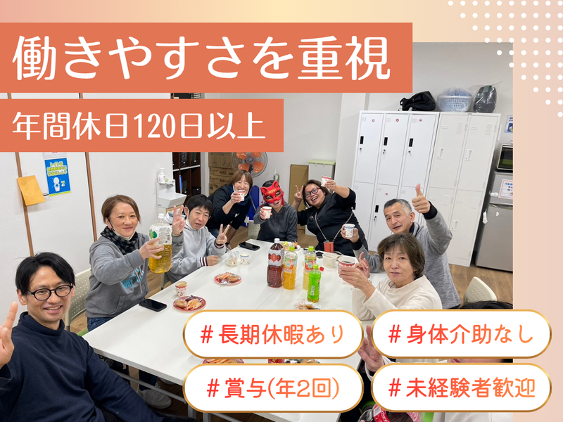 求めている人材 ✅必須資格・スキル *高卒以上 *普通運転免許(AT限定可) *運転経験がある方 →ミニバン、ワンボックス(9人乗り)等歓迎 ⏩1つでも当てはまれば、ぜひご応募ください! ======================= □人の成長を隣でサポートすることに喜びを感じる方 □「ありがとう」と言われる仕事がしたい方 □ 相手の気持ちを汲み取り丁寧なコミュニケーションができる方 □カフェや飲食店、アパレルなど、接客・販売経験をお持ちの方 ∟相手の状況を察するスキルや、分かりやすく説明するスキルが活かせます! □時短パートから正社員としてお仕事復帰を考えている方 \\こんな方も大歓迎です!// *福祉関係の仕事に興味がある *未経験スタート・主婦(夫)さん在籍! *お世話好き・お話し好きな方 *福祉関係の資格をお持ちの方 *管理職、営業職経験をお持ちの方 *基本的なPC操作ができる方 *Excel、Wordを使える方 *土日祝は休みの仕事を探している *平日のみでしっかり働きたい *ハローワークでお仕事をお探しの方