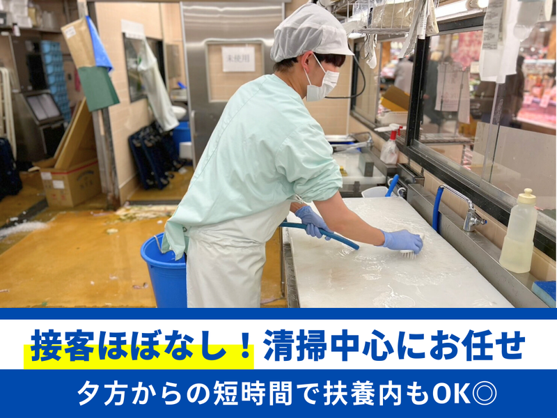 仕事内容 \接客ほぼナシ❗厨房内の清掃メイン♪/ 夕方からサクッと働ける <鮮魚店の清掃スタッフ> ◤ ̄ ̄ ̄ ̄✨ここがポイント✨ ̄ ̄ ̄ ̄◥ ✅清掃中心の裏方ワークで安心! ✅夕方からの短時間で扶養内もOK ✅週2日~OK!シフト相談も柔軟♪ ✅未経験歓迎!難しい作業なし ✅人と話すことが得意ではない方も活躍中 ✅自転車通勤OK&交通費全額支給 ✅社員割引あり!新鮮なお魚をお得に購入 ◣__________________◢ ✨具体的な仕事内容  ̄ ̄V ̄ ̄ ̄ ̄ ̄ ̄ ̄ 鮮魚専門店の厨房内で、 清潔な環境を保つための 清掃作業をお任せします。 ⏩厨房内では  ̄ ̄ ̄ ̄ ̄ ̄ ̄ ̄ ̄ ̄ ̄ ̄ ̄ ̄ ̄ ̄ ̄ ・ 使用後の床や作業場を水で流して清掃 ・ 調理器具の洗浄 ・ 厨房内の片付けなどの軽作業 ※難しい作業はなく、 未経験の方もすぐ覚えられます♪ ⏩働き方のイメージ  ̄ ̄ ̄ ̄ ̄ ̄ ̄ ̄ ̄ ̄ ̄ ̄ ̄ ̄ ̄ ̄ ̄ ・ 夕方からの短時間勤務 ・ 接客はほとんどなし ・ 裏方で黙々と進められるお仕事 _/_/_/_/_/_/_/_/_/_/_/_/_/_/_/_/_/_/ ⭐.。。. このお仕事のメリット .。。.⭐  ̄ ̄ ̄ ̄ ̄ ̄ ̄ ̄ ̄ ̄ ̄ ̄ ̄ ̄ ̄ ̄ ̄ 〇未経験から始めやすい清掃スタッフ 特別な知識や経験は不要! シンプル作業で安心スタート♪ 〇短時間で無理なく働ける 16:45~20:45の夕方シフトだから 学校帰り・副業・扶養内にもぴったり! 〇お得な社員割引あり お寿司や新鮮なお魚、珍味まで 社割価格で購入OK♪ 〇試食のチャンスもあり 新商品の仕入れ時などに いち早く味わえる特典も! _/_/_/_/_/_/_/_/_/_/_/_/_/_/_/_/_/_/ \夕方のスキマ時間を有効活用❗/ 接客ほぼナシの裏方清掃スタッフとして 短時間でサクッと働きませんか?