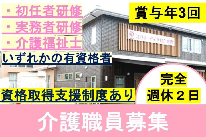 【アピールポイント】 デイサービスの介護福祉士を募集します! ■完全週休2日制 ■賞与あり年3回 ■未経験・ブランクOK ■資格取得支援制度あり ■扶養家族手当等、充実待遇