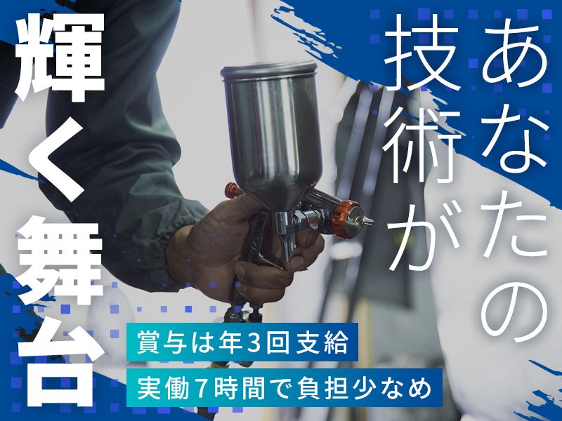 仕事内容 \\ 求人のポイント // ✅板金塗装業務に集中できる環境! ✅賞与は年3回支給あり ✅残業は月0~10時間程度です ✅実働7時間なので負担少なめ 【 仕事内容はコチラ 】 那珂川市にある工場にて一般中古車の 外装のリペア修理をメインにお任せ。 引き取り納車は少ないので、 業務に集中できる環境です。 【 当社について 】 地域に根付いた自動車サービス全般を 提供しており主な事業内容は下記です。 ①新車中古車販売・買取 ②中古車整備・板金塗装 ③自動車保険業務 ④レンタカー事業 ⑤レッカー業務