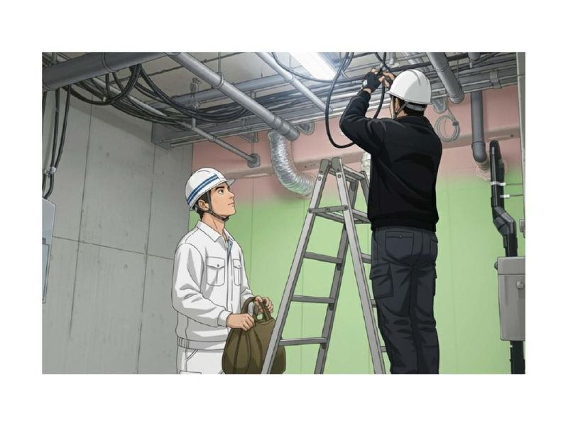 建築現場での電気工事士(電工)