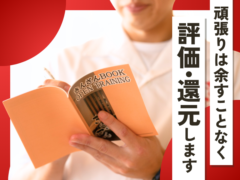 仕事内容 ◇-おすすめポイント!-◇ ★スタートから月給32万~! ★幅広い年齢層のスタッフ活躍中! ★完全週休2日でプライベート充実! - \きんざんの魅力をドドンと紹介!/ - 【1】スタートは全員同じ月給32万円~! 飲食経験者の方は1年以内の店長昇格 (月給40万以上)も可能! 出店計画が多数あるきんざんでは、 ポジションがなくて昇進出来ない。 なんてことはありません! 評価制度もしっかりしているので、 頑張った人は必ず昇進出来る そんな会社です! 【2】賞与は年2回必ず支給! 業績に関わらず必ず支給あり! 【3】完全週休2日制! 年休105日以上+年次有給 きんざんでは休日出勤を 禁止しているので、 必ずお休みしていただきます。 【4】福利厚生は全35項目を用意 ユニークな手当もあるので詳しい 内容についてはお問い合わせ下さい! - ~食を通じ、季節香る『和』をお届け~ - 『株式会社きんざん』は、 朝挽きの新鮮な鶏肉を 備長炭で焼き上げる焼き鳥や、 本場の味にも勝るタッカンマリを中心に、 オリジナリティあふれる季節の味覚などを 「和」にこだわった上質空間で 提供する飲食店を展開しています。 いま急成長の真っ只中にある 「株式会社きんざん」は、より優れた 組織づくりやシステムの構築のために 人材育成に励むと同時に、 やる気と息吹を感じさせる新たな人材を 募ります。 - 「名古屋で1番ホワイトな 飲食企業を目指しています」by社長 - 弊社の経営理念は、 『ともに、楽しむために。』を 掲げています。 ワークライフバランスは 今の時代においてとても大切。 休めない、給与が低い、拘束時間が長い... そんな飲食業界の在り方を変え、 「自分らしく」そして「楽しく」 働いてほしい! その想いから、完全週休2日制のシフトや、 正当な評価の為に、人事専門の コンサルタントと契約し評価制度の見直し、 オリジナル手当の導入など 業界トップ水準の雇用環境を整えています! 利益だけを追い求める経営はナンセンス。 社員やその家族など、支えてくれる 人たちを一番大切にします。 「きんざん」では全員が店長候補です。 私たちと一緒に楽しみながら、 会社を成長させていきませんか? - <仕事内容> ホール・キッチン業務全般を通して 素敵なお店づくりをお願いします! <具体的には> ▼ホール業務 ・お席のご案内 ・料理やドリンクの提供 ・会計業務 ・店舗清掃 など ▼キッチン業務 ・食材の仕込み・串打ち ・野菜や焼き鳥を焼く ・盛り付け ・鍋料理の調理 ・その他付随作業 など <教育体制> ・接客研修(1~2週間) 入社後は各店の店長やマネージャーより 現場研修やロールプレイング研修を実施 料理やお酒の提供の仕方など、基本的な マナーや接客を学びます。 ・焼き師研修(3~6ヶ月) 専任の焼き師アドバイザー指導のもと、 1対1で丁寧に教育を行っています。 弊社認定の焼き師の資格取得を 目指します。 ★先輩スタッフの声★ 前職も飲食店で働いていましたが、 勤務時間が長く、収入も少なかったので、 環境を変えたいと思い転職を決意しました。 きんざんで働こうと思った決め手は、 ・休みがしっかりと取れること ・福利厚生が充実していること です。 実際に入社してみて、待遇はもちろんのこと 自分の頑張りを正当に評価してもらえる ところや、働く人たちの人柄が良い ところなど、どんどんきんざんの良さが 分かってきました! 経験のある、ないに関わらず 全員が成長できる環境だと思いますよ! 一緒に働けることを楽しみにしています。 ~当社について~ 「焼き鳥きんざん」などの 人気店を筆頭として、名古屋を中心に 愛知県内外で21店舗を展開中! 2027年までに目指すは30店舗! 創業以来、朝挽きの新鮮地鶏を 備長炭で焼き上げる極上の焼き鳥や オリジナリティある季節のお料理で お客様をおもてなしします。 「上質な和」をコンセプトとした店づくりに こだわり、沢山のお客様にご来店 いただいています。 【運営店舗一覧】 ・名駅エリア(三丁目店/四丁目店/名駅新幹線口店/博多野菜巻き串ひょーげもん名駅四丁目店) ・大須・金山エリア(金山本店/炭火鶏焼肉しんざん) ・中区エリア(伏見店/住吉店) ・北区(大曽根店) ・千種エリア(今池店/本山店/博多野菜巻き串ひょーげもん今池店) ・尾張エリア(μPLAT一宮店) ・西三河エリア(刈谷店/豊田店/知立店/東岡崎店) ・三重エリア(四日市店) ・東京エリア(神田店/恵比寿店/五反田店) ・西区エリア(上小田井店) *勤務店舗は希望やスキルを考慮します。