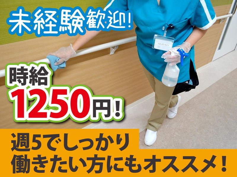 仕事内容 病院内の清掃スタッフを募集しております。 <具体的には・・・> 基本清掃・巡回清掃 共用エリアの廊下やトイレ、 病室、など施設内全般の日常清掃 先輩のほとんどが未経験からのスタート! 丁寧な指導があるので、初心者からプロのお掃除技術が身につけられ、家庭でも活かせます! 大手イオングループならではの安定感と、働きやすい環境も大きなメリットです。 ●初心者にもオススメ お掃除業務が初めての初心者の方も大丈夫!先輩が、基礎からしっかりお教えし、サポートもします。実際、現在活躍中のスタッフもほとんどが未経験スタート。 「普段の生活にも役立つスキルを身につけたい」「掃除好き」という方は、楽しく働けるはず。施設のご利用者様にも、感謝されるやりがいのあるお仕事です。 ●主婦(夫)・シニア活躍中 育児がひと段落した20代・30代・40代の主婦(夫)や、セカンドキャリアで働く50代・60代まで、幅広い年代が活躍しています。難しい業務はないので、初心者の方もお気軽にご応募ください。 個々のライフスタイルに合った働き方が可能です。家庭や趣味などと無理なく両立して働けます。 ●シフト相談もお気軽に シフトや希望休は、最大限考慮しています。理想の働き方など、まずは気軽にご相談ください。「趣味の集まりがある」「子どもの学校行事がある」など、プライベートも大切にしながら、働くことが可能です。幅広い年代が在籍しているため、互いのライフスタイルを尊重し、協力しながらシフト調整を行っています。 ●イオンディライトの紹介 イオングループの一員である私達イオンディライト株式会社は、清掃、設備管理、警備、建設施工など、企業の周辺業務サービスを提供する、総合FMS(ファシリティマネジメントサービス)企業です。 お客様の安全・安心・快適を守ることを使命としており、国内ビルメンテナンス業界では、売上第1位を獲得しています。 【弊社の特長】 20代・30代・40代の主婦(夫)や50代・60代のシニアの方を中心に、1000名以上のスタッフが活躍中。 その理由は長くやりがいを持って働ける環境整備に、会社が力を入れているから。 主婦(夫)には嬉しい扶養内勤務が可能である他、スポーツ施設利用補助や、特別優待などイオングループならではの待遇も充実。 働きやすい環境で腰を据えて、長く活躍ください。 【前職はさまざま】 様々な前職の先輩が活躍。例えば、引越/配送/ 倉庫作業/警備/清掃/交通誘導/セキュリティ/ドライバー/空調施設管理/ビルメンテナンス/コンビニ/百貨店/その他販売/洋服/雑貨/その他アパレル販売/居酒屋/カフェ/その他飲食関連業務など。 多くの先輩が初心者からスキルを身につけ、一人前に活躍しています。業界未経験の方のチャレンジも歓迎。ハローワークで求職活動中の方にもオススメです。 まずは、お気軽にご応募ください。