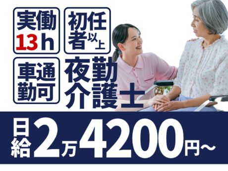 <高収入&実働短め★実働13時間夜勤>介福⇒日給2万5500円!週2回~|車通勤OK!無料駐車場完備