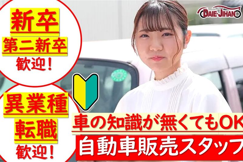 【仕事内容】 未経験から活躍できる自動車販売のお仕事!車に関する知識がなくてもOKです!車が好きな方や異職種からの転職歓迎致します! 新卒・第二新卒も大歓迎です!研修制度とフォロー体制で1から丁寧にお教えします。業績好調に伴う増員募集です! 自動車販売のご経験がある方はもちろん、販売や営業などのご経験がある方も大歓迎です!前職の給与・資格・経験など考慮致します! ■主な仕事内容 ・新車、中古車の自動車営業販売 ・保険の販売 ・来店されたお客様の対応 ・販売後のアフターフォロー など ●販売ノルマはありません。 訪問や飛び込み営業は一切ありません。もちろんノルマもなし!20代~40代のスタッフが多く、協力し合いながら 未経験からのスタートでも活躍出来ます。お客様とコミュニケーションを取りながらやりがいを感じれるお仕事です! ●異職種転職歓迎!新卒・第二新卒も大歓迎! 車に詳しくない方も大歓迎です。住宅営業、マーケティングリサーチ、保険会社などでの営業のお仕事をされていた方や、 接客販売のお仕事をされていた方、ディーラーや中古車販売店に興味をお持ちの方も、もちろん大歓迎です。新卒・第二新卒の方も大歓迎! ●研修制度も充実 先輩スタッフが丁寧に指導やサポートしていくのはもちろん、「新入社員研修」や「現場研修」など、皆さんがスムーズに業務を開始し、 会社の一員として自信を持って成長していけるよう、各部署で様々なこと知識や技術を指導研修したり、 外部研修を活用してサポートしています。また会社の方針や価値観を共有するための勉強会も行なっています。 ●創業55年以上の安定企業 ダイエー自動車販売は鈑金塗装の修理実績が埼玉県行田市でトップクラスの専門工場です。 日本トレンドリサーチによる調査で、満足度7項目において第1位を獲得しました! 複数のメディアにも取り上げられ、街のみなさまに信頼される整備工場です! いきなりの応募が不安な方は、会社見学だけでもご連絡ください!働き方や待遇面のお問い合わせにもお答えいたします。 ぜひお気軽にご応募・お問合せください。 ■HPやユーチューブなどで、会社の規模や雰囲気を発信中! 「株式会社ダイエー自動車販売」で検索してチェックしてみてください! 【求人ID-DJ2】
