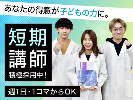 仕事内容 【教室長より】 当校は、駅チカ好立地にあります! 「塾講師」というとハードルが高いと 思うかもしれませんが、 みなさんがどこに不安を感じるかなどは よく分かっています。 先輩として丁寧にサポートし、 授業に集中でき、生徒と向き合える環境を しっかり作っていきます。 是非、生徒の"成功体験"をサポートしてあげて下さい! ●生徒の"分からない" を丁寧に手助け♪ 小・中学生を中心に、1授業2名までの生徒を担当。 定期試験対策を中心に授業をしていきます。 授業の指導方法は、 説明や授業見学、動画視聴など、 授業を担当する前に丁寧な研修を準備してあります。 新しい環境で、新しい仲間と 新しい仕事にチャレンジしてみませんか? ●ただ教えるだけじゃない。役立つスキルも身に付きます★ 塾講師の仕事はただ単に教える力がつくだけでなく、 年齢や立場が異なる方と接することで 人に伝える力やコミュニケーション能力の 向上に繋がり自身の成長にも繋がります。 教える、伝えることを学べる塾講師としての経験は、 就職活動にも活かせますよ★ ●当校の職場環境について スタッフ同士仲が良く、 室長は優しくてアットホームな雰囲気です♪ 「個」にこだわり、 ひとり一人のもつ考え方や取り組み方を 大切に指導していくことを目指している当塾。 何でも話しやすく相談に乗ってくれる優しい室長のもと、 明るく楽しいスタッフと一緒に働きませんか? ●入社後の流れ ▼指導可能科目の決定 ▼動画で授業の鑑賞 ▼先輩の授業を見る ▼実践! 「いきなり授業を!」 なんてことはないのでご安心下さい♪