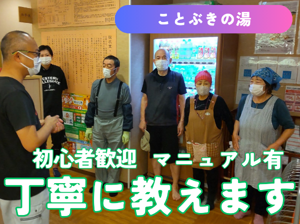 尾張旭 瀬戸 守山区ことぶきの湯/早朝の短時間清掃・クリーンスタッフ募集 ☆20代~70代幅広い年代の方が活躍中【アルバイト・パート/隙間時間を有効活用♪】 清掃スタッフ 愛知県尾張旭市三郷町83 アルバイト・パート 求人の特徴 週 2・3 日から OK 週 3・4 日から OK 週 4 日以上 OK バイトデビュー歓迎 中卒歓迎 主婦・主夫歓迎 学歴不問 未経験者歓迎 経験浅め歓迎 高卒歓迎 職場見学可 電話で応募・問い合わせ 服装自由 髪型・髪色自由 車通勤 OK 業務内容 ―――――――――――――――――――――― ①未経験スタートが90%以上!清掃マニュアル完備で安心♪ ②20代~70代まで幅広い年齢層の方が活躍中です ③Wワークや扶養内OK!短時間勤務かつ簡単な作業のお仕事です ―――――――――――――――――――――― ●業務内容 天然温泉ことぶきの湯 尾張旭市三郷店にて清掃業務をおまかせします。 朝礼後、複数名で分担し清掃を行います。 具体的には… ・浴槽、床、ガラスなどの浴場内の清掃 ・サウナ室や化粧台など脱衣場の清掃 ・玄関、ホール内の清掃 ・ロッカーなど備品の清掃 など 清掃後は清掃用具の片づけを行い、最終チェック・終礼(報告事項の共有)を行い、業務終了となります。 ●先輩の声 私は清掃のお仕事は未経験だったのですが、周りのスタッフがとても優しく丁寧にサポートしてくれました。重い物の持ち運びが無いので体への負担も少なく女性や年配の方も安心です。 週末のみの勤務や、家事や育児と両立しながら働いたり、ライフスタイルに合わせて勤務できるので、助かっています。 職種 清掃スタッフ 雇用形態 アルバイト・パート 勤務体系 シフト制 リモートワーク制度 リモートワークなし