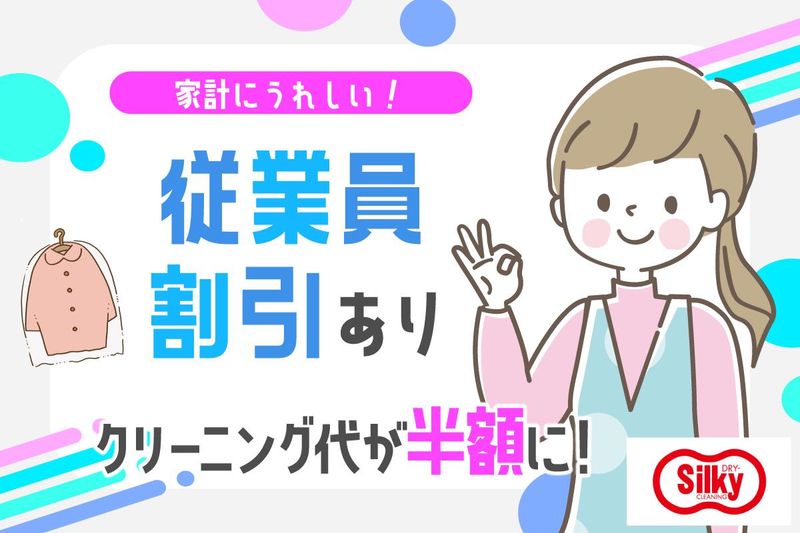 職場環境 未経験スタートを応援♪ 研修とサポート体制が充実! 質問しやすい職場環境です◎ 40代・50代の方が多数在籍! 創業60年以上の信頼と実績 地域に愛されるクリーニング店です。 http://silky-dry.co.jp/