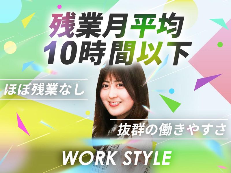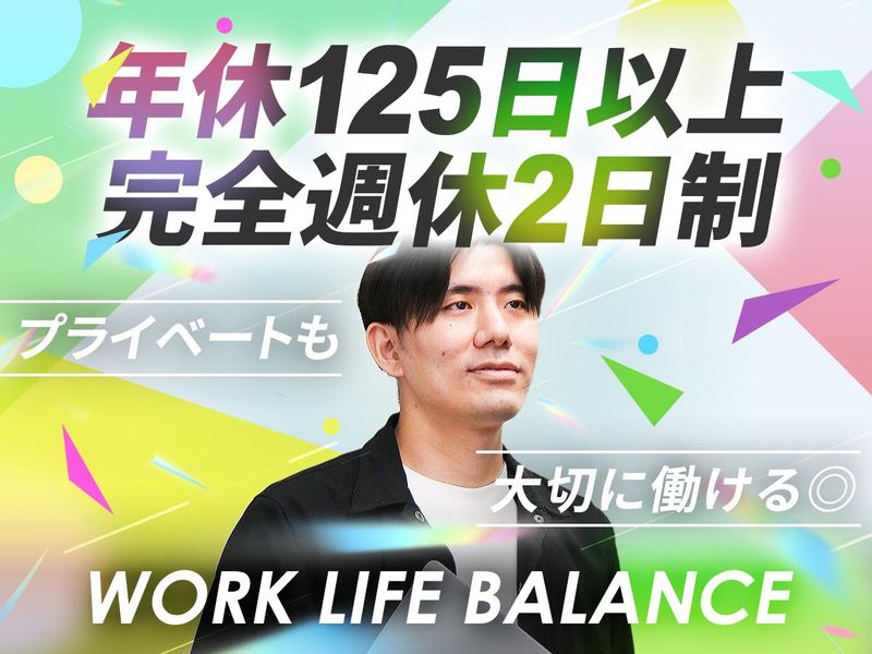 職場環境 【メンバー構成】 ●男女比5:5 ●20代前半~30代が中心 ●約90%が未経験スタート! 【待遇面】 ●年間休日125日以上 ●完全週休2日制×土日祝休み ●残業月平均10日以下 ●服装自由 喫煙所:なし(敷地内全て禁煙)