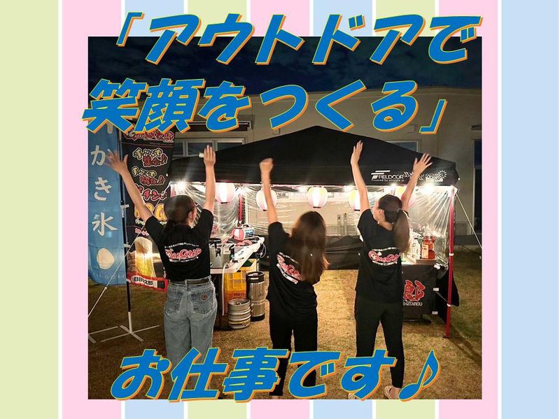 求めている人材 ◎要普通自動車免許 ※準中型以上あれば尚可 ◎土日祝に月6回入れる方 ★未経験の方も大歓迎! ★学歴不問・経験不問 ★高校生OK!大学生・フリーターさん活躍中! ★20代~40代活躍中! ★アウトドア好き大歓迎! ◎志望動機はなんでもOK! 「学校や家が近かったから」 「やりがいがありそうだったから」 「自然や緑に囲まれて仕事したい!」 「九州や関西でも働いてみたい」 などなど、あなたなりの理由でOKです!