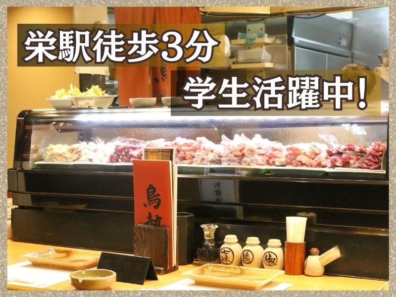仕事内容 経営者や著名人が多く利用される高級老舗焼き鳥店です。 お客様をお席へご案内し、注文取り、料理・ドリンクの提供、レジ等のホール業務を行います。 <仕事内容> ・ホール、カウンターの接客 ・店舗開店作業(簡単な清掃) ・料理提供 ・配膳 ・レジ業務 ・ドリンク作成 ・店舗閉店作業(簡単な清掃) ◇名古屋コーチンを使った高級焼き鳥店 栄養バランスのとれた美味しいまかないが食べられます! ◇チームワーク抜群で居心地のいい職場 ◇週1日~OKで、学業や遊びも充実!! ◇まかない無料(持ち帰りもOK) ◇24時まで勤務された方は女将さんが送ってくれます。 ◇アルバイトは全員大学生! みんな年齢が近いので就活の相談などもできますよ! ◎週1日~勤務OK!学業や遊びと、バイトの両立が可能です。テスト前なども気軽にシフト相談してくださいね♪ ★勤務は夕方17時から。栄駅や伏見駅にも近く、学校帰りに気軽にバイトしたい方にもピッタリです。 ★高級焼き鳥店ならではの美味しいまかないアリ♪ ★高校生OK!初めてのバイトも歓迎します!制服あり、交通費支給で始めやすい♪ 事業内容 炭火焼き鳥、鳥料理のお店 雇用形態 アルバイト