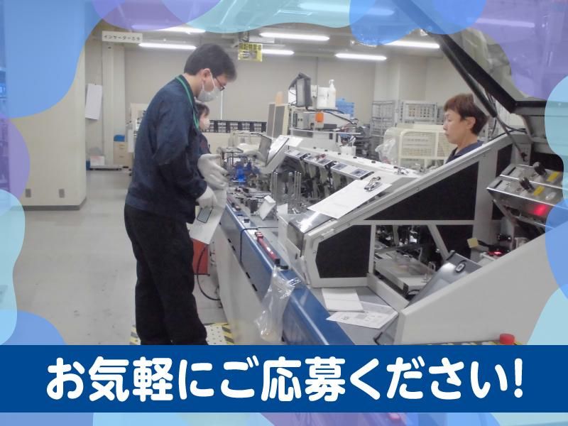 仕事内容 【雇用形態】アルバイト・パート 【職種】郵便物の封入機オペレーター <週3日~OK!21:00~翌5:00勤務> 「しっかり稼ぎたい」夜勤派の方に◎ ※夜勤のスタートは5月18日(月)ごろから の予定です。 (夜勤スタートまでの勤務期間は 9:00~17:00です) ―――――――――――――――――― ≫≫≫≫≫≫≫≫≫≫≫≫≫≫≫≫≫≫≫≫≫≫≫≫ 研修がしっかりあるので、 機械操作も不安なくスタート可能 ≪≪≪≪≪≪≪≪≪≪≪≪≪≪≪≪≪≪≪≪≪≪≪≪ ▼帳票を機械にセット 株主の情報が印字されている用紙を 機械にセットし、 カット位置を調整! ▼封筒を機械にセット 次にチラシ・封筒を機械にセットします。 機械をスムーズに動かすために 微調整を行います。 ▼機械が正常に動き始めたことを確認 セットが完了したら機械を動かし、 動作確認! 停止した場合は、原因を調べ、正しく対処! 再度機械を動かします。 ▼完成封筒がスタッカーにたまります 宛名・厚み検査装置を正常に通過した 封筒は、スタッカーへたまっていきます。 ここまでがあなたにお任せする作業です! 以下のURLより、マンガで 作業イメージをご覧いただけます。 https://www.jpbizmail.co.jp/arbeit/manga-01/ ――――――――――――――――――