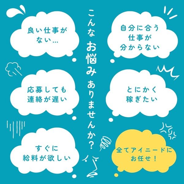 キャッチコピー 【激レア新着求人】★高時給1350円!★日払い・週払いOK★土日祝休み★プライベート充実★ 雇用形態 派遣社員 掲載企業名 アイニード(i-need) 大阪営業所 応募受付先電話番号 072-238-5252 企業情報(備考) 企業名:株式会社アイニード 大阪営業所 事業内容:派遣許可番号 派27-300498 有料職業紹介許可番号 27-ユ-300746 URL:https://i-need.co.jp/ ☆当社では転職の目的、経験、今後のご希望、適性をもとに、 経験豊富なコンサルタントがお話を伺わせていただきます。 将来の可能性を一緒に考えていきましょう。 採用HP https://q-mate.jp/ineedosaka/index.html 「人」と「人」とすべての架け橋になれる企業づくりを 【アイニードについて】 【選考フロー】 エントリー 気になる求人が見つかったら、Webまたは電話にてエントリー! ヒアリング 先ずはご応募頂いた求人の詳細内容を丁寧にご説明させて頂きます。 その後、転職の目的・経験・今後のご希望・適性・業界動向をもとに、経験豊富なコンサルタントがお話を伺わせていただきます。 具体的に決まっていない場合にも、将来の可能性を一緒に考えていきましょう。 企業をご紹介 ご希望に沿った求人、自分では気づかなかったキャリアを活かせる求人を納得のいくまでご紹介させていただきます。 職場見学会も実施しておりますので、ご自身の目で見て働くかどうかの見極めも可能ですので、安心して就業開始が出来ます。 すぐにご紹介できる求人がなければ、ご希望条件を確認の上、ご希望に沿った企業に対して営業活動を行います。 お仕事スタート 勤務の初日は必ずコンサルタントが同行しますので、ご安心下さい。 ※応募から最短1週間以内での勤務開始も可能です。 ★充実の福利厚生★ 有給休暇や社会保険は勿論のこと、お財布がピンチの時に日払い・週払い制度も利用出来ますし、完全無料のeラーニングで全5,000コンテンツから学びたい事を学びたい時に利用が可能! 【企業WEB CM】 【営業所へのアクセス】 南海電気鉄道高野線/堺東駅より徒歩5分になります。 ※駐車場は御座いませんので、お車でお越しの際には近隣のコインパーキングにお停め頂きますよう宜しくお願いします。 【住所】 大阪府堺市堺区三国ヶ丘御幸通10 三幸ビル402号室 場所が分からない…迷ってしまった、、、そんな場合は下記までお電話下さい。 【TEL】 072-238-5252