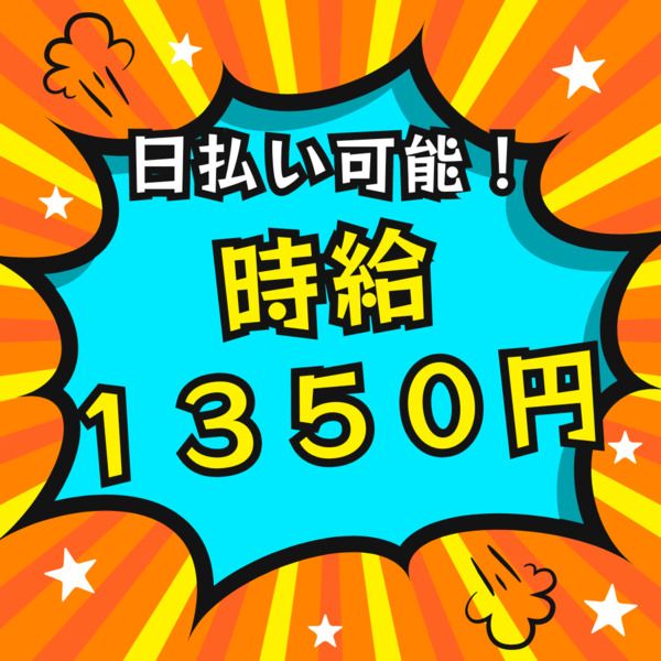 時給1,350円~1,687円 給与 時給1,350円〜1,687円 お給料前にピンチを迎えた方!ご安心ください ★前給制度あり:日払い・週払いOK(規定あり) 【給与例】 【給与例】 時給:1,350円 1日あたり8時間勤務で計算 月21日勤務で月収約22万円以上の収入(別途残業手当)