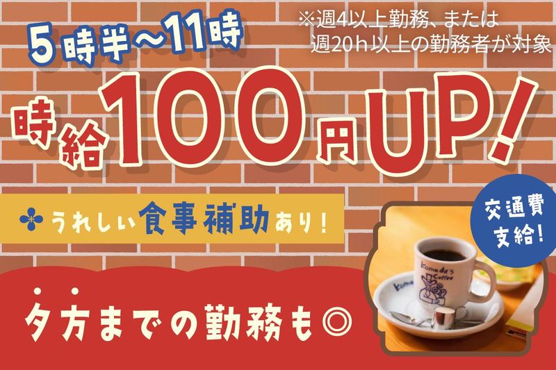 仕事内容 ・。*・。*・。*・。*・。*・。*・ ⭐朝5:30〜の早朝勤務OK お昼前には仕事が終わるから、 午後の時間はすべて自由に使えます! ⭐1日3時間〜の短時間も歓迎 「スキマ時間でサクッと」も 「しっかりフルタイムで」も選べます! ⭐18時頃にはお仕事終了 夕飯の準備や、趣味の時間など、 夕方以降の予定も立てやすい環境です! ・。*・。*・。*・。*・。*・。*・ 「朝の時間を有効活用したい」 「夕方からは自分の時間にしたい」 そんな方に、選ばれているシフトです◎ \\ ここがPOINT // ✅5:30〜11:00は時給1250円にUP♪ ✅天神南駅から徒歩1分と通いやすい ✅未経験OK!ブランクOK! ✅初めてのアルバイトにも◎ ✅大手ならではの丁寧な研修&マニュアル ✅美味しい「まかない」あり 【 仕事内容 】 コメダ珈琲店 福岡天神南店にて、 ホール業務を中心とした 店舗スタッフのお仕事をお任せします。 ▼具体的には ・お客様のお席へのご案内 ・オーダー対応、メニューの提供 ・レジ業務 ・食器洗浄 ・簡単な調理サポート など ホテル併設店舗のため、 店内は落ち着いた雰囲気。 お客様にくつろぎの時間を提供する、 丁寧な接客が特徴です。 まずは笑顔で、 「いらっしゃいませ」が言えればOK! 接客の基礎から丁寧にお教えします。 *-*-*-*-*-*-*-*-*-* ✅ライフスタイルに合わせて働けます Wワーク・掛け持ちでの勤務も可能。 早朝の時間を活かしたい方にも 選ばれている職場です。 ✨週3日~OK・扶養内勤務にも対応 ✨平日のみ・土日祝のみも相談OK ✨学生、主婦、フリーター活躍中 本業や学校前に少しだけ働きたい方にも ピッタリです◎ *-*-*-*-*-*-*-*-*-* ✅未経験から始めやすいカフェのお仕事 カフェ業務が初めての方も 安心してスタートできます。 ✨先輩スタッフの丁寧なサポートあり ✨分かりやすいマニュアル完備 ✨未経験から始めたスタッフが多数在籍 接客を通して、 ちょっとした気遣いや丁寧なサービスが 自然と身についていきます。 *-*-*-*-*-*-*-*-*-* ✅まかないあり・調理補助にも挑戦可能 美味しいまかないがあり、 お仕事の後はほっとひと息つけます。 簡単な調理補助にも挑戦できるため、 ベーカリーや洋菓子、パン屋さんなど、 「食」に関わるお仕事に興味がある方にも おすすめです。 また、朝の時間帯(6:30~11:00)は、 宿泊者さま向けの朝食サービスにも 携わっていただけます。 *-*-*-*-*-*-*-*-*-* ✅人間関係の良さが自慢の職場 チームワークと助け合いを 大切にしている店舗です。 ✨コミュニケーションが活発 ✨新人さんもすぐに馴染める雰囲気 ✨20代・30代・40代の男女活躍中 無理なく、長く続けやすい環境が 整っています。 *-*-*-*-*-*-*-*-*-* 【 コメダ珈琲店について 】 「シロノワール」でお馴染みの コメダ珈琲店は、 日本発祥の喫茶店チェーンとして、 長く多くのお客様に親しまれている ブランドです。 国内店舗数は第3位を誇り、 安定した運営基盤のもとで 安心して働ける環境が整っています。 (※全日本コーヒー協会調べ)