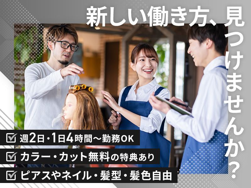 仕事内容 +•* +•* +•* +•* +•* +•* +•* +• 週2日・1日4時間~勤務OK 自由なスタイルで あなたらしく勤務ができる! +•* +•* +•* +•* +•* +•* +•* +• \この求人のポイント/ ☑ カラー・カット無料の特典あり ☑ 車通勤OK!交通費支給 ☑ ピアス・ネイル・髪型自由 ☑ 座席数4席の隠れ家サロン **仕事内容** カット以外のサポート業務を中心に、 シャンプー・カラーなどから 徐々にステップアップしていけます! >>具体的には… ●シャンプー施術、カラー塗布 ●受付やお会計などのフロント業務 ●店内清掃や片付け ●スタイリストのアシスタント業務全般 ●お客様への簡単なご案内や接客