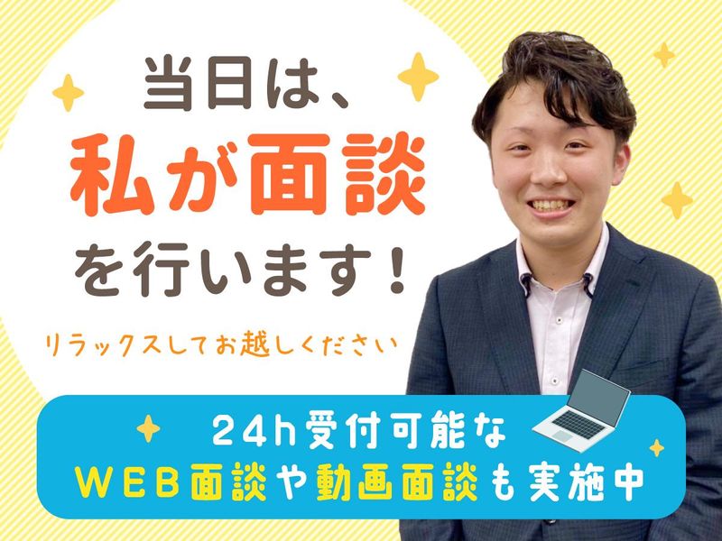 選考プロセス 「応募する」ボタンを ご利用ください。 こちらより折り返し ご連絡をさせて頂きます。 または、お気軽にお電話下さい。 ✅応募フロー 【1】応募 ↓ 【2】面接(1回) ↓ 【3】職場見学 (働くイメージをつけて!) ↓ 【4】勤務開始 ※応募~勤務開始まで、 最短2週間です! ✅出張面接も可能です。 ✅5分で簡単動画面接は下記URLから! https://itsumen.net/user/tmpl/PH4PVHlyuZ1Ku23kdDm7zMUP?openExternalBrowser=1
