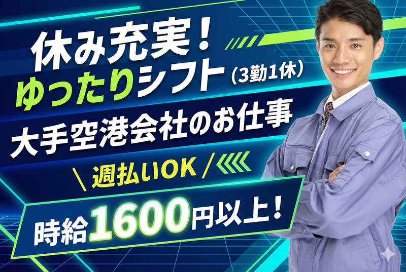 仕事内容 ⭐オシャレで清潔でカッコいい! ⭐空港関連施設でのお仕事! ⭐休憩スペースや食事が取れる エリアも用意されており、 職場環境として最高の環境! ■空港関連施設にて、 建物の設備管理や警備に近い 業務をお任せします。 専門的な知識や、 重たいものを運ぶ力仕事は必要ありません。 【具体的な業務】 1. 設備の簡易点検・対応 電球の交換やエアコンの温度調整など、 日常的な設備のケアを行います。 2. 施設内の巡回 建物内を歩いて回り、設備に異常がないか、 不審な物がないかを目視や音で確認します。 3. モニター監視(座り作業) 防災センターのような場所でモニターを見て、 施設全体に異常がないかチェックします。 4. 修理の立ち合い 専門業者による修理が必要な際に、 現場への案内や作業の立ち合いを行います。 ■この仕事ならではの魅力 【1】無理なく働ける環境 重量物の運搬や過度な肉体労働はありません。 空調の効いた室内での業務が中心で、 モニター監視などの座り作業も含まれるため、 体力的な負担が少なく、長く安定して働けます。 【2】安定性と将来性 航空業界を支えるインフラに近い仕事のため、 景気に左右されにくく仕事量が安定しています。 また、頑張り次第で派遣先への社員登用のチャンスもあり、 長期的なキャリア形成を目指す方にも最適です。 【カナエルの理念・ポリシー】 当社カナエルは、 「人財を大切にする」企業様とのみ お取引をしています。 事業を支える派遣スタッフの力を理解し、 社員登用も視野に入れる企業様ばかりです。 私たちは、求職者の皆様を第一に考え、 そのような素晴らしい企業との 架け橋になりたいと思っております。