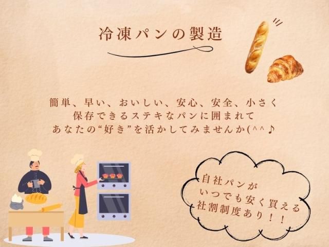 パン好き必見♪ランチもできたて買って食べれます!未経験OK!冷凍パンの製造作業(和歌山市) オーブンの中でふくらみながら焼きあがる とっても不思議な魔法の冷凍パン生地です。 簡単、早い、おいしい、安心、安全、小さく保存できる ステキなパンに囲まれてあなたの“好き”を 活かしてみませんか(^^♪ 【お得情報】 自社パンがいつでも安く買える 社割制度あり!! ・未経験OK ・勤務時間選べます ・直接雇用(契約社員・パート等)の可能性有り