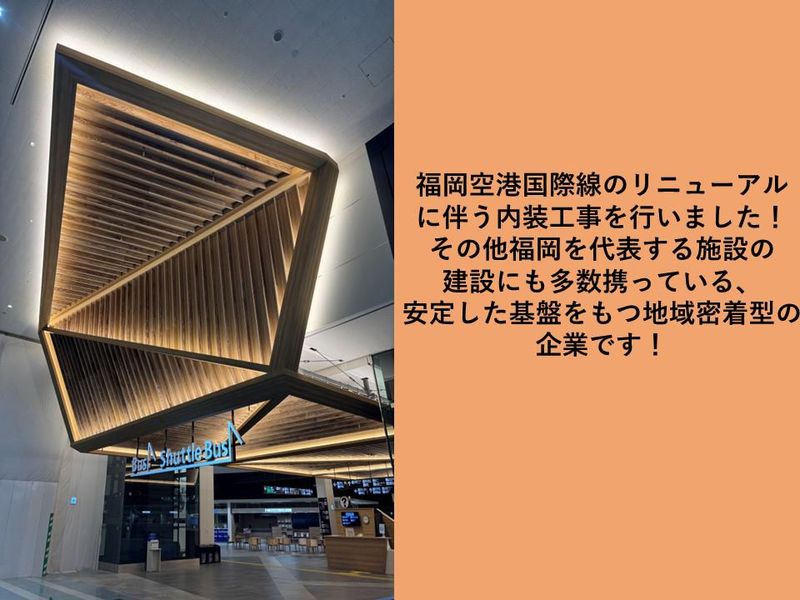 仕事内容 ─┘─┘─┘─┘─┘─┘─┘─┘─┘ ▼働きやすい理由&魅力▼ 【屋内作業メイン】夏も冬も快適な環境! 【残業ほぼなし】毎日17時にサッと帰れる! 【高日給】未経験でも日給1万2000円~! 【資格取得支援】費用は会社負担でスキルUP 【手当充実】出張や食事代もしっかりサポート ─┘─┘─┘─┘─┘─┘─┘─┘─┘ ≪業務内容≫ 商業施設やオフィスビルなどの内装の基礎となる「壁」や「天井」の骨組みを、"軽鉄"という軽量な鉄骨を使って組み立てるお仕事です。 図面を見ながら、何もない空間に骨組みを完成させていく、達成感とやりがいのある仕事です。 ↓↓ ▼ ↓↓ 具体的なお仕事 ↓↓ ▼ ・資材(軽鉄)の搬入・準備 ・図面に基づいた墨出し(位置決め) ・軽鉄材の加工・切断 ・壁や天井の骨組みの組み立て ・壁や天井のボード貼り ・現場の片付け・清掃 >>>経験ゼロでもこれで安心 1|まずは先輩の補助からスタート 2|道具の名前や使い方から丁寧に指導 3|簡単な作業から少しずつお任せ 4|資格取得も会社が全面バックアップ ⇒ 独り立ちまであなたのペースに合わせて、しっかりサポートするので安心してください! 【この環境で働く魅力など】 01.│「天候に左右されない働きやすさ」 →建設業で懸念されがちな夏の炎天下や冬の寒さの中での作業はありません。常に快適な屋内で作業に集中できるため、体への負担も少なく、安定して働くことができます。 02.│「プライベートを大切にできる環境」 →残業はほとんどなく、基本的に17時には作業が終了します。日曜・隔週土曜休みに加え、GWやお盆、年末年始の長期休暇もあるため、家族との時間や趣味の時間をしっかり確保できます。 03.│「未経験からプロへ成長できる」 →充実した研修と資格取得支援制度(費用は会社負担)で、全くの未経験からでも専門技術を身につけられます。多くの先輩が未経験からスタートし、今では第一線で活躍しています。 <?他にはない、ここで働く魅力?> →私たちは創業以来「後悔のない施工」をモットーに、質の高い技術を提供してきました。少数精鋭ながらも定着率が高く、和気あいあいとした雰囲気の中で、確かな技術を学び、成長できる環境が自慢です。 \スタッフにインタビューしてみました!/  ̄ ̄ ̄v ̄ ̄ ̄ ̄ ̄ ̄ ̄ ̄ ̄ ̄ ̄ ̄ ̄ ̄ ■入社のきっかけ… 前職は屋外作業が多く、天候に左右されるのが悩みでした。ここは屋内作業がメインで、残業も少ないと聞き、自分のペースで働けそうだと思い入社を決めました。 ■仕事のやりがいについて… 何もない空間に自分たちの手で壁や天井の骨組みができていくのを見ると、大きな達成感があります。図面通りにピッタリ仕上がった時は嬉しいですね。自分が手掛けた建物が多くの人に利用されるのもやりがいです。