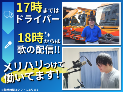 求めている人材 40代~50代、60代の方も活躍してます! 未経験歓迎! ◆要大型免許 <こんな方を歓迎します> ●資格を活かして働きたい方 ●新しいことに挑戦する意欲がある方 ●真面目に仕事に取り組める方 <未経験の方も安心の環境!> 「トラックの運転は不慣れ…」 という方も安心できるよう、 教育体制も充実! 新人向けの育成グループがあり、そこでしっかりレクチャーします。 またキャリアアップ制度もご用意しているので、ゆくゆくリーダー・管理職を目指していきたい方も大歓迎! __________________ ✅ 働くスタッフにインタビュー!  ̄ ̄ ̄/ ̄ ̄ ̄ ̄ ̄ ̄ ̄ ̄ ̄ ̄ ̄ ̄ ̄ ̄ Q.入社の決め手は? 説明会や面接で一番親身になって 話を聞いてくれたことです! 人の良さに惹かれて入社を決めました! ……………………………………………… 大企業によくある縦割りではなく、 一人ひとりに寄り添って教えてくれる 教育制度に惹かれて入社しました! Q.趣味の時間に没頭できるって本当? ルーティン業務でストレスが少なく 休日も多いので趣味に没頭できます! ■Tさんの場合… 歌うことが大好きで、 ほぼ毎日歌の配信をしています!! いつも大体18時頃から配信してます! 残業が少ないからこそ決まった枠で できるので嬉しいですね! ■Uさんの場合… 高校生の頃から吹奏楽を続けていて バリトンサックスを吹いてます! 今は、市民団体に入っていて、 年に1回の定演にも参加してます! 会社のみんなも聴きに来てくれるので、 頑張りがいがありますね! 「よかったよ~」と褒めてもらえると、 ちょっと照れますがとても嬉しいです!