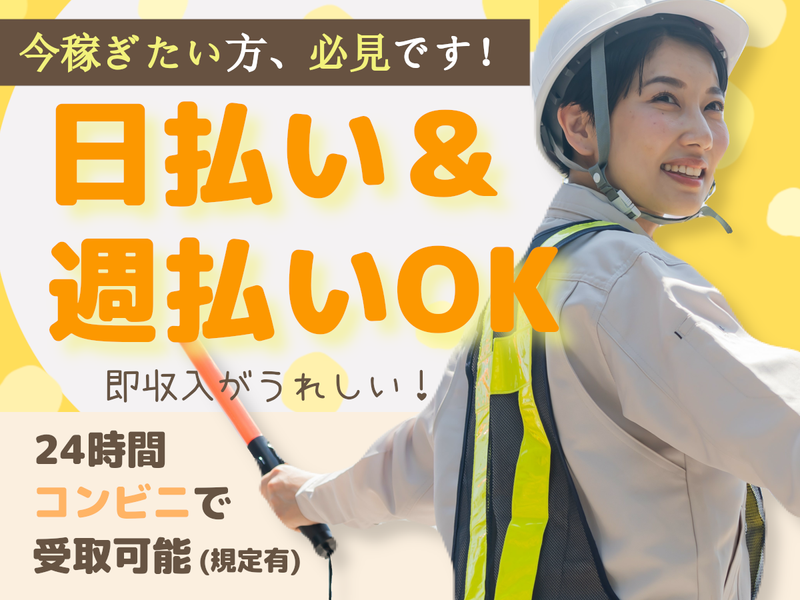 仕事内容 *。- 交通誘導などの警備スタッフ大募集 *。- <⭐日給アップキャンペーン> 週4日以上勤務できる方は 入社から2ヶ月の間 日給2000円アップ!! 未経験でもしっかり稼げます! <⭐安定したお仕事量> 土日祝も現場あり! 週2日~自分の働ける曜日を 気軽にご相談ください◎ 大手警備会社ならではの 安定したお仕事量で安心! <⭐こんな隊員が活躍中!> ✅レギュラー勤務 ✅定年退職後のセカンドキャリア ✅大学生(授業がない平日に勤務) ✅Wワークで副収入を得たい方 - 仕事内容 - 現場での交通誘導などの 警備業務をお任せします! 具体的には… ✅建設現場や、 道路工事現場などの交通誘導 ✅大きい道路での片側交互通行 ✅通行止め案内 ✅車両・歩行者誘導 など 時期によっては、、 ✅イベント警備 (マラソン大会や花火大会など) もあります。 しっかりした研修があるので 未経験でも安心スタート! 在籍中の隊員も9割が未経験◎ わからないことはなんでも 相談できる環境です! ✅メインは日勤の交通誘導ですが 適性や希望に合わせて施設警備を お任せすることもあります。 ※急にお願いすることはないので ご安心ください! ⏩⏩気になったら即応募⏩⏩ スピード選考・採用を心がけています! WEB・お電話より気軽に ご応募お待ちしています◎ ※応募後「面談希望日ご回答のお願い」 というメールが届きますので、 チャットURLよりご回答下さい。 株式会社ダイワ・セキュリティー・システム高槻営業所 ✅072-665-4788 saiyo.branch@daiwa-ss.com(採用担当)