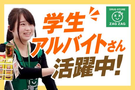 仕事内容 ■授業後の学校帰りに、あなたのペースでお仕事できますよ♪学生アルバイトさん活躍中です! ドラッグストア ザグザグでのレジ業務が主なお仕事です。その 他、商品陳列、売場のご案内、店内の清掃などもお願いします。 医薬品の販売・説明は、薬剤師や登録販売者といった専門スタッ フが対応しますので、未経験者の方でも大丈夫!まずは明るい 接客を心掛けてください♪ 【PTCP-1】 ■お仕事の魅力 未経験の方でもすぐに活躍できるよう、サポート体制も充実して います。新商品や話題の商品をいち早く知る事ができ、お仕事を 通じて、お薬やサプリメント、化粧品などの知識も自然と身に付 く環境です♪ ■パートナー大募集! ザグザグでは、パート、アルバイトスタッフを総称し「パート ナー」と呼んでいます。時間、働き方は違っていても、会社を支 える重要な一員だと考えているからです。ぜひあなたもザグザ グのパートナーとして一緒に働いてみませんか? ■応募資格について ≪高卒以上≫資格不問!未経験者歓迎!! ※ザグザグでは地域のみなさまの美と健康づくりをサポート するため、喫煙者の方からの応募はご遠慮いただいております。 ※兼業はお受けできない場合有。詳細はお問い合わせください。 ■嬉しい社割あり! ザグザグには嬉しい社員割引制度があります! 正社員、パート、アルバイトなどの雇用形態に 関わらず全スタッフが対象です◎ 洗剤の詰め替えや化粧品など、生活必需品が 毎回お安く買えて、とってもお得です♪ 気になった商品を気軽に試すことが できるので、お気に入り商品との出会いがあるかも!
