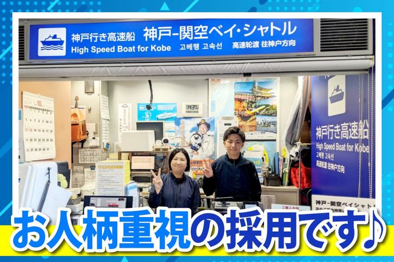 関西空港での連絡船のチケット受付・販売スタッフ