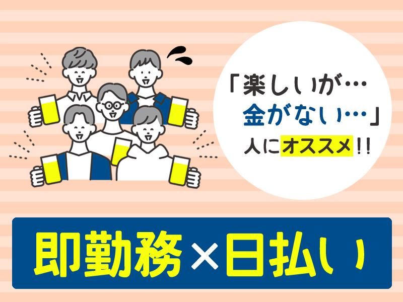 仕事内容 =========== ネイル・髪型自由×人気案件★ 検品・シール貼り・仕分けなどの 簡単作業ばかり! =========== ■■■未経験の方も大歓迎!■■■ 主婦(夫)・学生・フリーターなど 20代~50代迄幅広く活躍中! <オススメ案件> ライブグッズやTシャツの仕分け作業 週1~OKだから、空いた時間に サクッと働ける♪ 大学生・Wワーク・主婦(夫)の方も大歓迎! 駅チカだから通勤もラクラク♪ ■9:00~18:00 週1日~OK◎ 365日稼働◎ [内容] ライブグッズやTシャツの仕分け作業 簡単だからスグ覚えられる♪ ▼その他にも・・・ ■仕分け ■検品 ■シール貼り などのシンプル軽作業多数! 単発のお仕事を探されている方、 モクモクとお仕事をしたい方♪ お気軽にご応募下さい。 初めての方でもすぐに覚えられます◎ ー ▼働きたい理由は何でもOK! 「急な出費でピンチ・・・」 「家計の足しにもう少し稼ぎたい・・・」 「急にヒマになった・・・」 など ー ★★<WEB面談も可能♪>★★ “来社不要"のWEB面談も選べます! PCやスマホがあれば 家からでも参加可能です♪ ー ★★<お給料がスグGETできる♪>★★ 【日払いOK】(規定あり) 【週払いOK】(金〆切、翌金支払い) 支払方法はその都度変更可能◎ 日払い&現金手渡しOK!! 「急な出費でお財布ピンチ・・・」 「週末に推し活があって・・・」 などなど、日払いOKだからこそ安心! ー ★★<いつでもお仕事探せる♪>★★ 365日稼働なので、 スグに稼ぎたい方にはおススメ! シフト申請はスマホでポチッ!  ̄ ̄ ̄ ̄ ̄ ̄ ̄ ̄ ̄ ̄ ̄ ̄ ̄ ̄ 働きたいなと思ったら・・・ スマホをタッチして予約するだけ! ー <一つでも当てはまったらご応募を♪> □簡単に覚えられる仕事がいい □空き時間だけ働きたい □コツコツ&黙々と働きたい □友達と一緒に働きたい □ちょっとしたお小遣い稼ぎをしたい などご要望は何でもご相談くださいね◎