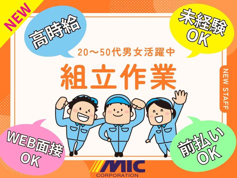 【保険制度】 雇用保険、労災保険、健康保険、厚生年金 待遇・福利厚生 【福利厚生】 ⏩交通費支給(規定内) ⏩社会保険完備 ⏩有給休暇 ⏩給与前払い可(稼働分/規定) ⏩赴任費用支給(規定) ⏩車・バイク通勤OK(規定) ⏩髪型自由 ⏩食堂あり ⏩制服貸与 【お仕事探しはMICにお任せ】 ☆Point1 ┗採用から入社後も同じ専属担当が親身にサポート! LINEや電話で相談OK! お仕事のお悩みは一人で抱えこまず担当にご相談ください。 働きやすい環境作りをサポートしております。 ☆Point2 ┗正社員登用実績多数! 正社員で働きたいけど、職場環境を見てから判断したい。。。 こんなお悩みある方いませんか?? MICでは最初は派遣社員さんとしてご就業してから 正社員になるかご自身で選べます! 仕事に慣れてから正社員になれるので定着率も◎ ☆Point3 ┗初期費用無料の寮完備&引越し手伝いOK 引越し業者にかかる費用は無しで引越し可能! 初期費用がかからないのですぐに働けます◎