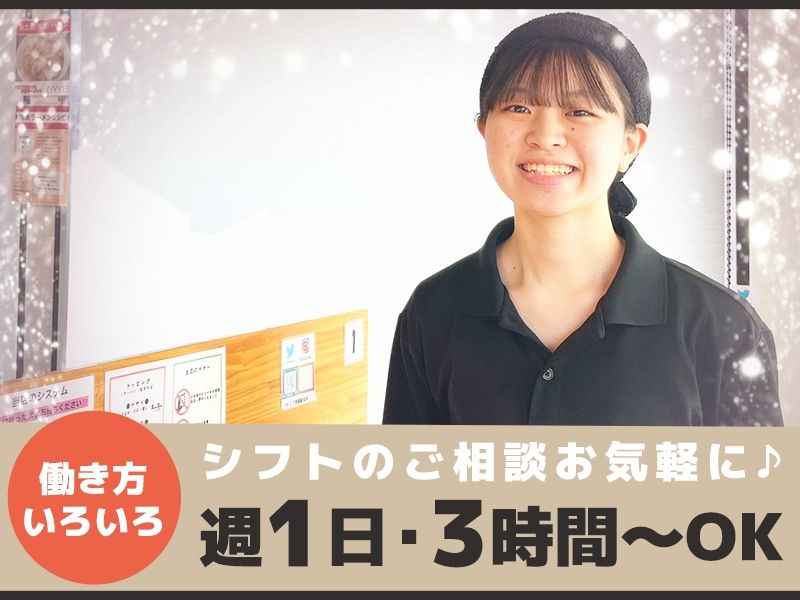 募集求人 【学生・主婦(主夫)さんに大人気】高校生OK♪週1~、1日3時間~勤務OK♪女性活躍中! 職種 キッチン・閉店作業のスタッフ 雇用形態 アルバイト パート 仕事特徴 学生活躍中 主婦・主夫活躍中 未経験歓迎 週1日から 曜日・時間が選べる 高収入 バイク・車通勤OK まかない・食事補助 Wワーク活躍中 扶養内 募集情報 【未経験でも活躍できる!】やりがい十分のラーメン店!時給1,320~1,850円&美味しい賄いあり♪10代~30代位の方が活躍中! ========== ☆高崎市で大人気! 二郎インスパイア系ラーメン店 キッチン・閉店作業スタッフ大募集! ========== ☆未経験の方も活躍中! ラーメン店での勤務や接客の経験が無いという方も お気軽にご応募ください! イチからしっかり丁寧に教えますので、 ぜひチャレンジしてください。 ☆働きやすいシフト制! 週1日~、1日3時間~の勤務からOK!! 「短時間勤務したい」主婦(主夫)の方、 「空いた時間に働きたい」フリーターの方など 働き方はそれぞれ相談にのります♪ ☆美味しい無料まかない有り! ラーメン好きの方必見!! お客様に提供しているものと同じラーメンを 賄いで食べられます! その他 関連ワード:ホールスタッフ、フロアスタッフ、ハローワークで仕事探し中の方へもおすすめ