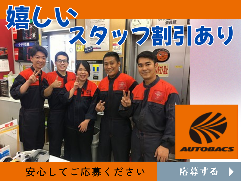 求めている人材 先輩がしっかりサポートします 車の知識がなくてもOK! 最新アイテムなど車に詳しくなれますよ 販売経験や接客経験がなくても大丈夫! 車の知識がなくてもOK! *高校生OK!男女スタッフ活躍中! *販売、レジ未経験の方も大歓迎! *ラストまでや土日勤務できる方大歓迎! *主婦(夫)さんも大歓迎!