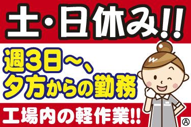 夕方からのパート募集!電子部品の製造業務! 工場内の軽作業/未経験OK! 夕方からの勤務/土日休み!