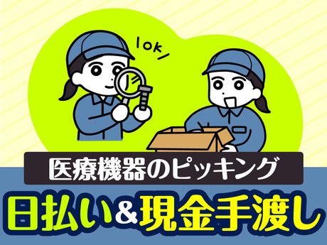 仕事内容 医療機器のピッキング /////////////////////////////////////// (σ'u')σ【全額日払い・現金手渡しOK】 スグに働きたい方にもピッタリ◎ /////////////////////////////////////// ◎細かい作業が好きな方におすすめ♪ ◎体力的な負担少なめ! ◎未経験の方でもすぐに覚えられるシンプルな作業です。 < 早さよりも正確さや丁寧さを重視◎> ★医療機器を注文リストに沿って取り出す 軽量な部品や小型機器を多く扱います! シンプルな単純作業! 丁寧な研修とサポート体制あり! 安心して働ける環境です♪ コツコツ作業が得意な方にオススメ☆ アピールポイント ===== ★<POINT>★ ===== ■全額日払い・現金手渡しOK(規定あり) ■単発・短期~長期まで自由自在! ■派遣デビューの方も大歓迎♪ ■未経験・お仕事ブランクOK ■履歴書・来社不要で登録可能♪ ■シフトはスマホから申請楽々! ■初勤務手当支給有り ================== あなたの理想の働き方をご相談ください♪ 「平日だけ働きたい」 「Wワークで土日だけ」 「子どものお迎えまでの時間がいい」 「効率よく稼げる夜勤がいい」 「長期休暇中だけフル勤務したい」など どんなご希望も相談OK! プライベートも大切にできる働き方を一緒に探しましょう! 「応募する」ボタンから、 お気軽にお問い合わせください☆彡 登録までの流れをご紹介 ┏━━━━━━━━━━┓ たったコレだけでOK! ┗━━━━━━━━━━┛ (1)『応募する』ボタンをタップ!*24時間OK! (2)メール記載のURLより登録会の予約をお願いします! (3)面談でしっかりご説明します!これで登録完了♪ ☆お友達との応募も大歓迎! ☆紹介可能案件数は業界TOPクラス! まずはかんたん登録♪ WEB面談OK◎ オンラインだけでは不安な方は、来社登録会も実施中です!
