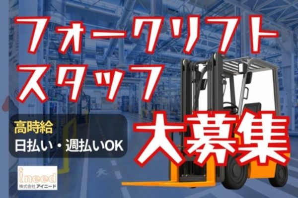 仕事内容 ◆主な仕事内容◆ 別フロアでピッキングされた電動ドライバーなどの電気工具や部品などの荷物が出荷エリアに流れてくるので、 そこから出荷先ごとにカートやパレットに仕分けしていただきます! 更にカートに仕分けされた荷物は、 出荷先ごとに決められたスペースがあり、その場にパレットが置いてあるので、 その上に積み上げて最後ラップで巻いて出荷となります! 出荷先の区分が近くの場合直接パレットに積み上げていきます! 出荷作業がメインですが、 フォークリフトの免許がある方はそちらを活かして フォークリフトを使った業務もお願いします! :+:・-・:+:・-・:+:・-・:+:・-・:+:・-・:+: ◆ポイント◆ 土日祝休みですが、平日残業があるので稼ぎたい方にはおすすめです☆ パレットの上には重たいものからどんどん載せていくだけ! パズルが好きな方は綺麗に積み上げられるとかなり嬉しいと思います♪ 希望する方はお弁当も550円で頼むことができます! 作業服などのお仕事に必要なものは貸与されるので 安心してすぐお仕事始められます! 休憩室とは別に休憩スペースが近くにあるので、 少しの休憩時間でも座って休めます! 先輩達が周りにたくさんいるので、 わからないことなどあればいつでもすぐ聞けます! 事前見学OK! まずは見学したい方もお気軽にお問い合わせください! :+:・-・:+:・-・:+:・-・:+:・-・:+:・-・:+: ☆キャリアアップ支援☆ eラーニング制度あり! ・充実した約5000のコンテンツ(簡単な脳トレやPCスキル、健康管理、語学学習、AI基礎知識等)を無料で受講OK 初心者向けの講座から上級者向けの講座まで幅広いレベルの講座があります! ・24時間いつでもどこでも受講OK お仕事の休憩時間やお休みの日などお好きなタイミングで受講可能です! ・何度でも復習や見直しなど可能◎自分のペース進めていけるので安心☆ 勉強したけど再度確認したい時やもう1度見てみたい等も大丈夫! スキルUPにご利用ください☆ :+:・-・:+:・-・:+:・-・:+:・-・:+:・-・:+: ☆株式会社アイニードで働くメリット☆ その1:来社一切不要です!(お電話等でラクラクリモートでの面接実施中) その2:給料は日払い・週払いOK※規定有 その3:お仕事スタートまで最短3日!(平均3~5営業日) LINE・メッセージ・メール・電話…お困り事はいつでも相談可能です! :+:・-・:+:・-・:+:・-・:+:・-・:+:・-・:+: