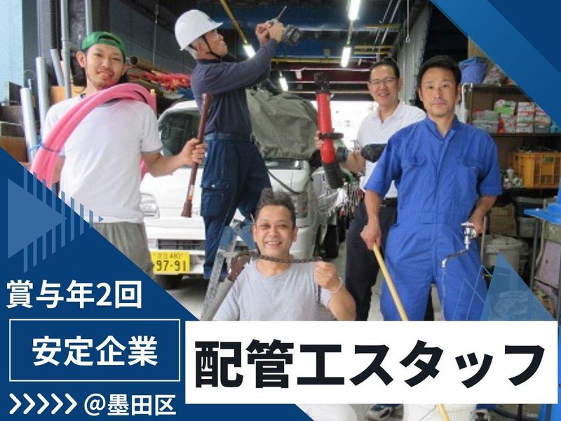 仕事内容 ✅経験者大歓迎!!定着率抜群の企業 ✅土日祝日休み✊ ✅昇給&賞与あり!収入も安定◎ ✅基本残業なし!プライベートも大事に ★:・.――――――――――――.・:☆ 【仕事内容】 水道管工事・配管工事の施工を行います。 新築・リフォーム・メンテナンスなど、 幅広い施工をお任せいただいております。 事務所は墨田区ですが、 現場は都内中心に多数ございます。 ** 大久保工業所についてご紹介 ** 地元・墨田区密着! 地元出身のメンバー多数活躍中! 30代中堅~50代の ベテランまで在籍中です。 経験者の方には即戦力として 現場をお任せしていきたいですが、 ブランクがある方や、 新しい会社のやり方に 馴染んでから始めたい方は、 当社の仕事に慣れるまで チームでのお仕事に入るなど、 柔軟に対応しますので、 希望をお聞かせください! ■――――――――――――――・… 【嬉しいPOINT多数あり!】 ⭐土日祝休み! 現場によっては 土曜・祝日が出勤の場合もありますが、 基本は私生活との両立をしながら 無理なく働けます♪ ⭐基本残業なし! 移動(戻り)時間も残業手当を支給! ⭐昇給年1回&賞与年2回あり! 頑張りをしっかり評価します! ⭐中高年活躍中! 異業種からの転職も応援します♪ ■――――――――――――――・…