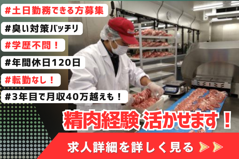 精肉経験者大募集!年休日120日✨臭い対策バッチリ&定時退社