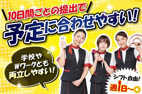 資格 ★大学生さん・フリーターさん多数活躍中! 「カラオケが好き」「人と話すのが好き」 そんな気持ちがあれば、経験はなくても大丈夫。 今いるスタッフも、みんな始まりはそれぞれ。 ・授業のあと、終電まで働く大学生 ・昼職のあと、深夜で収入を増やすWワーカー ・フリーターから社員を目指す人 など “接客が初めて”でも、“ブランクがあって不安”でもOK。 笑顔で「いらっしゃいませ」が言えれば十分です。 プライベートを優先しながら、 自分のペースで続けたい人にピッタリ。 ここなら、気負わずスタートできます。