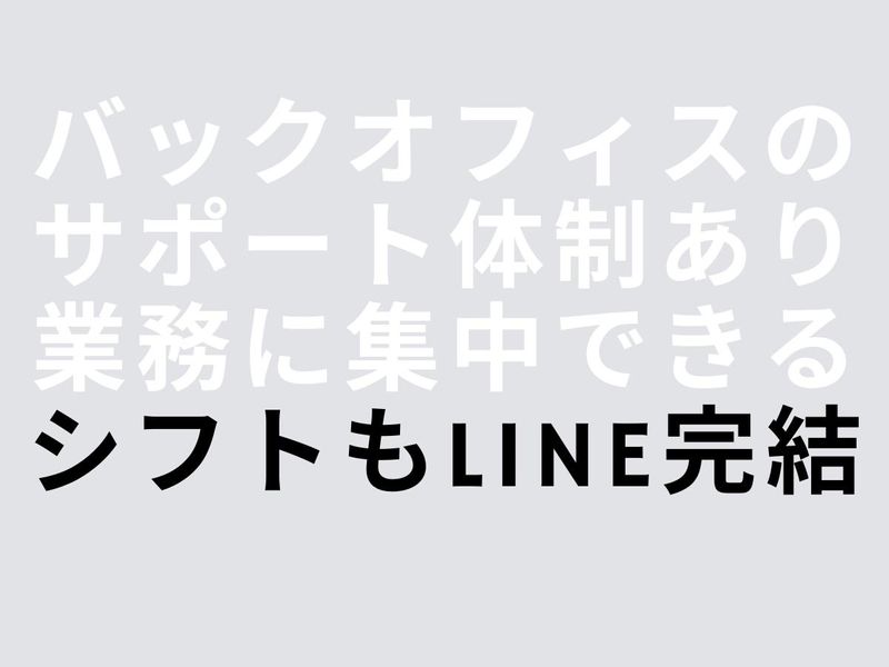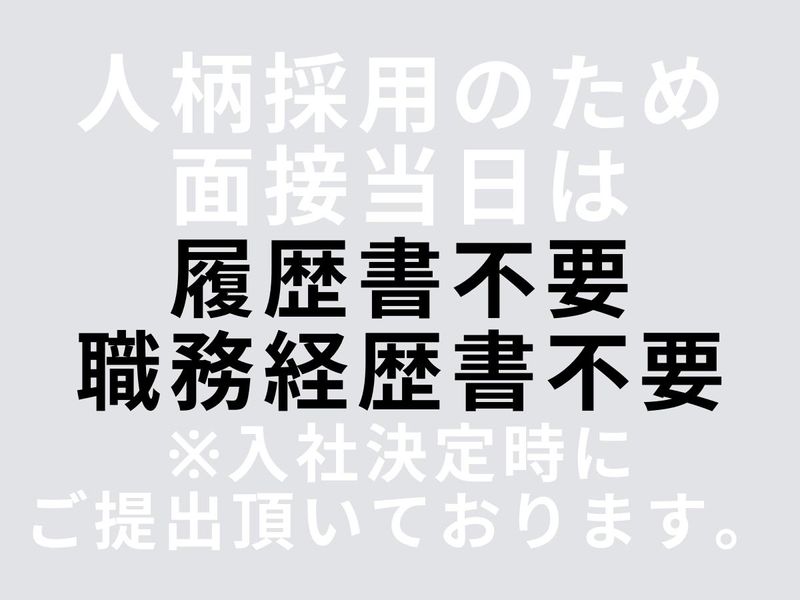 選考プロセス [1] 応募フォームよりご応募 ↓ [2] 採用担当より面接日程の調整などの連絡 ↓ [3] 面接実施 ↓ [4] 採用決定のご連絡 ↓ [5] 入職手続き 面接1回!最短即日内定も可能! 職場見学OK/履歴書なしで応募OK 「年収を上げたい」「安定して働きたい」「自分にできるか不安…」 そんなあなたの応募を全力でサポートします! まずはお気軽にご応募ください!