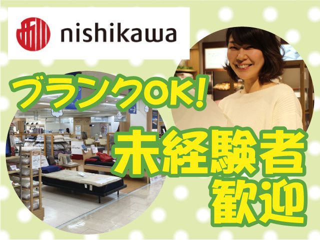 仕事内容 睡眠ソリューションを提案する接客・販売のお仕事です。 寝具やインテリア用品に加え、スリープテック技術で快適な眠りをサポートします。 【主な仕事】 ・寝具、インテリア用品の接客・販売 ・その他生活用品の接客・販売 (リラクゼーション商品(フェイスケア用品など)、ひざ掛けなど) ・商品陳列、納品整理、売り場の簡単な清掃 ・売り場レイアウト・ディスプレイ変更 ・販売ノルマはありません(店舗ごとに毎月の販売計画あり) 1日の仕事の流れ一例 ◆Aさん(1日の業務内容紹介/早番の場合) 9:45~ 出勤 朝礼、掃除等 10:00~ 開店作業、納品整理、販売・接客等 12:00~ 昼休憩 13:00~ 販売・接客 15:00~ 休憩 16:00~ 売場レイアウト変更 ディスプレイ変更等 18:15~ 退勤 ※基本的に時間外勤務はありませんが、 接客の状況や商品入れ替え等により発生する場合があります 専門知識は不要 商品の特性などは、少しずつ覚えていけばOK! もちろん、接客中もわからないことは 先輩がすぐに助けます! 接客・販売が未経験でも 安心してスタートできますよ。 いままで短期で勤務していた方も、 長期で腰を据えて働いてみませんか? お客さまのご希望やお悩みを うかがいながら、最適な商品をご案内。 たとえば・・・ ・クーラーが苦手な方に、 寝苦しい夜に助かる寝具のご案内 ・肩こりや腰痛が辛い方に、枕の高さや 敷き布団の堅さのアドバイス などなど、様々なお悩みにこたえます。 販売スタッフ未経験も経験者も歓迎 インテリア・雑貨販売に限らず、 アパレル販売やカフェ・飲食の 販売接客経験も活かせます。 西川では30代から 中高年の方まで幅広く活躍中。 ブランクがある方も歓迎。 今までアルバイト・パートだった方も、 この機会に契約社員で働いてみませんか! キャリアパスについて 経験やスキルに応じてステージ制を導入しています。 「スリープマスター」などの社内資格を取得し、 眠りのプロとして専門性を高めながら活躍可能。 将来的には店長をはじめ、教育担当、新店準備担当といった 専門的なポジションも目指せます。 勤務地について 転居を伴う店舗異動はありません。 通勤圏内での店舗変更の可能性があります。 こんな働き方できます ・子育てが落ち着いたのでまた働きたい ・インテリアに興味があるから 好きなもの囲まれて働きたい ・自分自身も快適に眠りたいから、 仕事を通して知識が得られたら最高! ・健康グッズが好きだから最新のものを いち早く知れるのはうれしい ・接客業にブランクはあるけど、 やっぱりお客様と触れ合う仕事は好き 生活の根幹である「眠り」 商品知識や接客マナーはもちろん、 眠りに関する様々な知識も 働きながら学べます。 寝具だけに限らず、眠る前の過ごし方など トータルで学べるので、 ご自身の生活にも役立ちます! お客様の快適な眠りのアドバイザーとして、 イチから眠りの"プロ"を目指しませんか? 西川の『SLEEP TECH』 「スリープテック」とは、「睡眠(Sleep)」と「テクノロジー(Technology)」を組み合わせた言葉です。 デジタルの力で、眠りを可視化し、 睡眠の質を向上させるためのサービスをお届けします。 近年、健康志向の高まりとともに、睡眠市場は年々拡大を続けています。 睡眠の質を重視する人が増え、快眠をサポートする寝具やスリープテック製品が注目されています。 現代社会のストレスや生活リズムの乱れを背景に、睡眠の重要性はますます認識され、 今後も成長が期待される業界です。 たくさんの方の健康と睡眠を支えられます。 あなたのコミュニケーション能力を活かしてたくさんの人を笑顔にしてください。