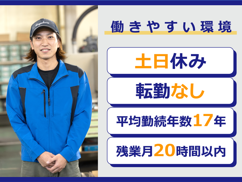 仕事内容 本求人職種の就労資格が必須となります。 The company is unable to obtain the working visa for this job. ※業務中に日本語を使うため、 日本のマナーでコミュニケーションが 取れる方、会話ができる方。 \\ ここがポイント! // ✅給与は前職給与を参考に定めます! ✅土日休み!無理なく働けます ✅需要がなくならない国内外の自動車部品 ✅平均勤務年数は17年・転勤なしで 腰を据えて働けます ✅ほとんどの人が未経験スタートなので 研修も充実! 金属を大きなプレス機械で押しつぶし、 自動車部品の形に整えるお仕事です。 ▼主な作業内容 1.金属素材を専用の機械(プレス・ ハンマーなど)にセット 2.素材が型に正しく入っているかを確認 3.機械のボタンを操作して、 自動で圧力をかけて成形 4.完成した製品を取り出して、 割れや変形がないか確認 その他に、 素材に熱を加え硬度を上げる熱処理や、 自動車部品を決められたサイズや形に削って仕上げる 工程を担当いただくこともございます。 どの工程でも全て機械が自動で行うため、 未経験の方でも安心して始められます。 重いものも運んだり、暑い環境ではないのでご安心ください! <⭐入社後は…> まずは数日間の座学研修からスタート。 その後、現場での研修を行います。 先輩社員のサポートを受けながら、 比較的簡単な業務から挑戦しましょう。 焦る必要はありません。 少しずつ技術や知識を 身につけていけばOKです。 <⭐未経験でも大丈夫> 現在活躍中の先輩たちも、 ほとんどのメンバーが未経験入社です。 未経験者の育成には慣れているので、 万全の体制を整えています。 安心して学べる環境です。 <⭐チームで業務を進めます> 1台の機械に1人のオペレーターが付いて 業務を行いますが、製造開始前の準備は、 他のメンバーと協力しながら進めます。 先輩にいつでも頼れる環境です。 チームワークを大切にしながら 一緒に業務に取り組んでいきましょう。 <⭐仕事のやりがい> アメリカ・ベトナム・メキシコにも製造拠点を持ち、 グローバルな事業展開を進める当社。 当社の製品は、国内だけでなく、 海外の自動車メーカーにも納品されます。 「自らがつくり上げた部品が、 世界中の自動車に搭載される」 誇りとやりがいを感じながら 仕事に取り組めます。 ※海外拠点とのやりとりなど、 英語を使う業務はありません。 ※将来的に海外工場での勤務を 希望する方は別途ご相談ください。 =====*=====*===== <当社について> 長倉製作所は、自動車のオートマチック・ トランスミッションに関する部品などを 製造しているメーカーです。 当社の強みは「冷間鍛造」。 金属を熱して加工するのではなく、 常温のままプレス加工する技術で、 熱による寸法の変化が小さいため、 高精度・高付加価値形状の 加工が実現できます。 冷間鍛造による量産体制を持つ企業は 世界的にも珍しいため、 国内外のメーカーと取引を行っています。 今後も世界から求められる技術を提供し、 さらなる成長を実現するために、 ぜひあなたの力を貸してください。 ともに成長していきましょう。