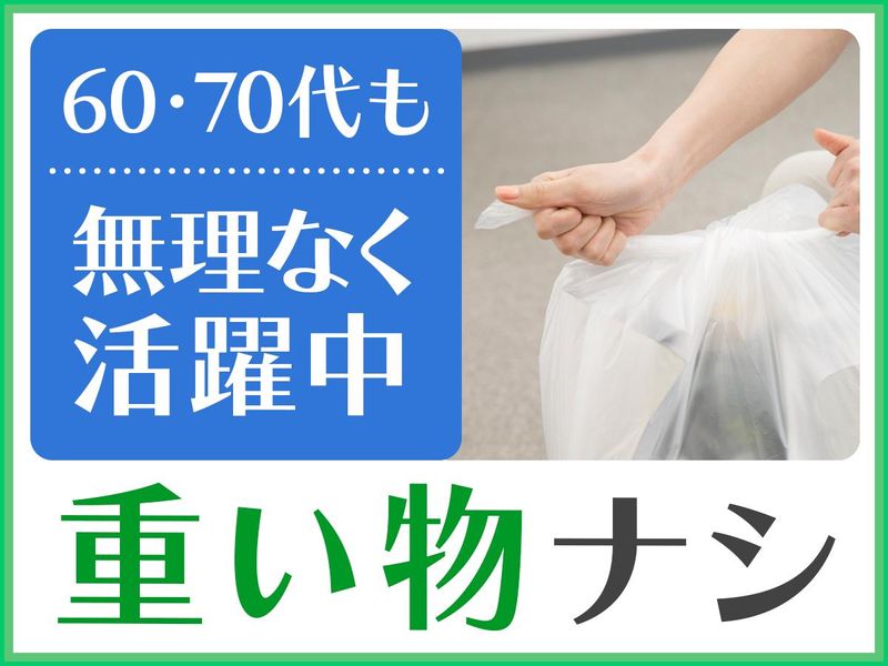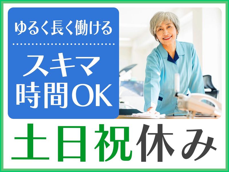 仕事内容 【生活の余白を収入にチェンジ!】 ★細く長くゆるやかに働けます◎ ★8割の方が未経験スタート。 ★シニア活躍中! …………………………………………… ✅年金+αの収入に最適 週5日・1日3.5時間での勤務 →月8万5820円の収入! 週3勤務でも月5万円以上の収入可能! …………………………………………… ✅体に負担ありません! 重い作業なし! 台車使用 エレベーター使用可能 …………………………………………… ✅短時間・決まった場所で安心 午前中のみ! スキマ時間のいつもの決まった場所で◎ ………………………………………………… ✅シニア活躍中!経験・スキル不問! これまでの経験やスキルよりも、 真摯に仕事に取り組む姿勢を重視◎ ………………………………………………… 【業務内容】 フロアごとに担当していただきます。 複数人での作業ですが、担当箇所は1人での作業となります。 作業責任者が付いて丁寧に指導します! 難しい仕事はありませんのでご安心ください! ◆カーペットのバキューム清掃 ◆ゴミ箱の中のゴミ回収 ◆共用部清掃 ◆トイレ掃除など ※すべての作業はエレベーターの使用と台車の使用が可能です◎ ………………………………………………… 生活にメリハリをつけながら安定したプラスα収入も稼げます♪ どなたでもチャレンジできます✨ ご応募お待ちしております。