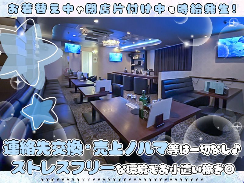 仕事内容 簡単なドリンクを用意して、 お客様と会話を楽しむ… それだけのシンプルなお仕事です♪ 指名、ノルマ・罰金、そういった 息苦しいルールとは無縁の職場です! 連絡先の交換も禁止なので、 仕事とプライベートをきっちり分けて働けます◎ お越しいただくのは ほとんどが顔なじみの常連様!! 必要以上に気を張る場面がほとんどありません♪ ありのままの自分で、自分の ペースで接客できるのがこのお店の魅力です! 先輩スタッフが必ず隣でサポートするスタイルなので、 初日から一人で対応することはありません◎