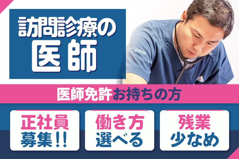 【雇用形態】 正社員 【契約期間】 試用期間なし。常勤のため無期雇用。 【その他】 #経験者歓迎 #ブランクOK #有資格者歓迎 #未経験者歓迎 #医師免許 【ハローワークへの求人掲載について】 弊社の求人はハローワークに掲載していない案件が多数ございます。(ハローワーク求人掲載は期間が経つと自動的に掲載が止まるため) ハローワーク経由でお仕事を探している方はお問い合わせ頂ければハローワークにて求人を掲載し、そこから応募して頂く場合もございます。 【このような方活躍】 介護・在宅医療業界の医師(医者、ドクター、内科医、訪問診療医、在宅診療医、ホームヘルス医)で未経験から働きたい方。医師や訪問医経験者の方。当直なし選択可、時間外選択可、週4日~OKの在宅医療訪問クリニックで医師として働きたい方。医師免許お持ちの方、ブランクOKも活躍している職場で働きたい方。医師として正社員で働きたい方。医師を新着急募。医師、在宅医療、医師求人、医者、訪問医療。