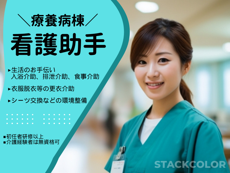 仕事内容 お急ぎの方はこちらにお電話ください! ▶080-3687-9375(担当携帯) SMSでの問い合わせもOKです◎ 療養病棟での看護助手業務をお願いします。 具体的には ・生活のお手伝い(入浴介助、排泄介助、食事介助) ・移動/歩行のお手伝い ・食事配膳、下膳 ・衣服脱衣等の更衣介助 ・ シーツ交換などの環境整備 ✨資格はあるが実務未経験の方、ブランクのある方歓迎です。