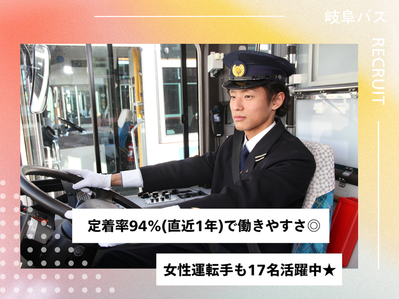 求めている人材 【必須】 普通自動車免許(AT限定可)をお持ちの方 【こんな方にピッタリ】 一つでも当てはまる方は是非ご応募ください! ・時間管理&自己管理ができる方 ・常に冷静さを保てる方 ・穏やかで前向きな方 ・運転や人と関わることが好きで、思いやりのある方 ★20代、30代、40代、50代、幅広い年代が活躍中 【全額会社負担で大型二種免許の取得可能!】 男女問わず未経験から、憧れの「バスの運転士さん」に デビューした社員も沢山活躍★ 不安を払拭できるよう最長3カ月かけて研修を行います。 <高速・観光バス業務にステップアップも> 入社後1~2年間、路線バス業務を経験 していただくと、希望に応じて可能! ※その際も空車教習や検定を 受けていただきますので、ご安心ください。 ~<バスドライバーの待遇向上へ>~ ◆運行スケジュール・シフトの見直し ◆運賃改定・給与アップ ◆男性の育休取得 ◆自動運転バス運行プロジェクト ◆「土日休み正社員」制度 ◆転居支援の金額見直し ◆休憩室や昼食補助 など、働き方改革の取り組みを積極的に実践中★ 本人のみならず、家族も安心する職場環境を目指しています! ~<異業種から転職した先輩へ取材>~ 最初家族にはビックリされました。 人の命を預かる責任、事故の心配や 休日が合わなくなるなど不安も正直ありました。 創業82年目の岐阜No.1規模の会社なので、 研修体制や安全装備はばっちり。 福利厚生や待遇面も、 改善が進んでおり、収入は安定。 もちろん、時間は不規則で拘束時間が長いのが 大変ですが、残業代はキッチリ支払われますし、 なによりお客様の「ありがとう」がやりがいです。 一度身に付ければ、この先ずっと活かせるため、 確実にスキルアップにもなり、 自分にあった仕事内容で、 仕事に誇りを持てるようになりました! 説明会で、仕事内容、残業、休日など 細かく確認できるので、自分にあった働き方か、 ぜひ話を聞いてみてください。 一緒に、岐阜のインフラを支える お仕事ができることを心よりお待ちしています! ■【気さくな先輩乗務員ばかりで安心】■ フラットに接してくれるので、気負うことなく 馴染むことができますよ。 疑問点や不安なことがあると、 親身に相談に乗ってくれます★ 【こんなシーンも...】 毎日同じ時間、同じバスに乗車されるお客様も多く、 「今日は〇〇さんの日なんだね」と話しかけられたり、 地元の方との心温まる交流も楽しめます。 交通事情で多少到着が遅れたときもお礼を言ってくださったりも! お客さまからの言葉や挨拶に、 運転士として”やりがい”を感じている方がほとんどです。